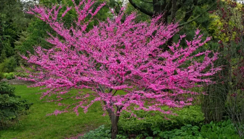 With heart-shaped leaves and stunning pink blooms, the Redbud embraces charm in compact spaces. Often celebrated for its versatility, this tree thrives in various soil types and climates. Its visual appeal, combined with minimal care requirements, makes it a small garden favorite.