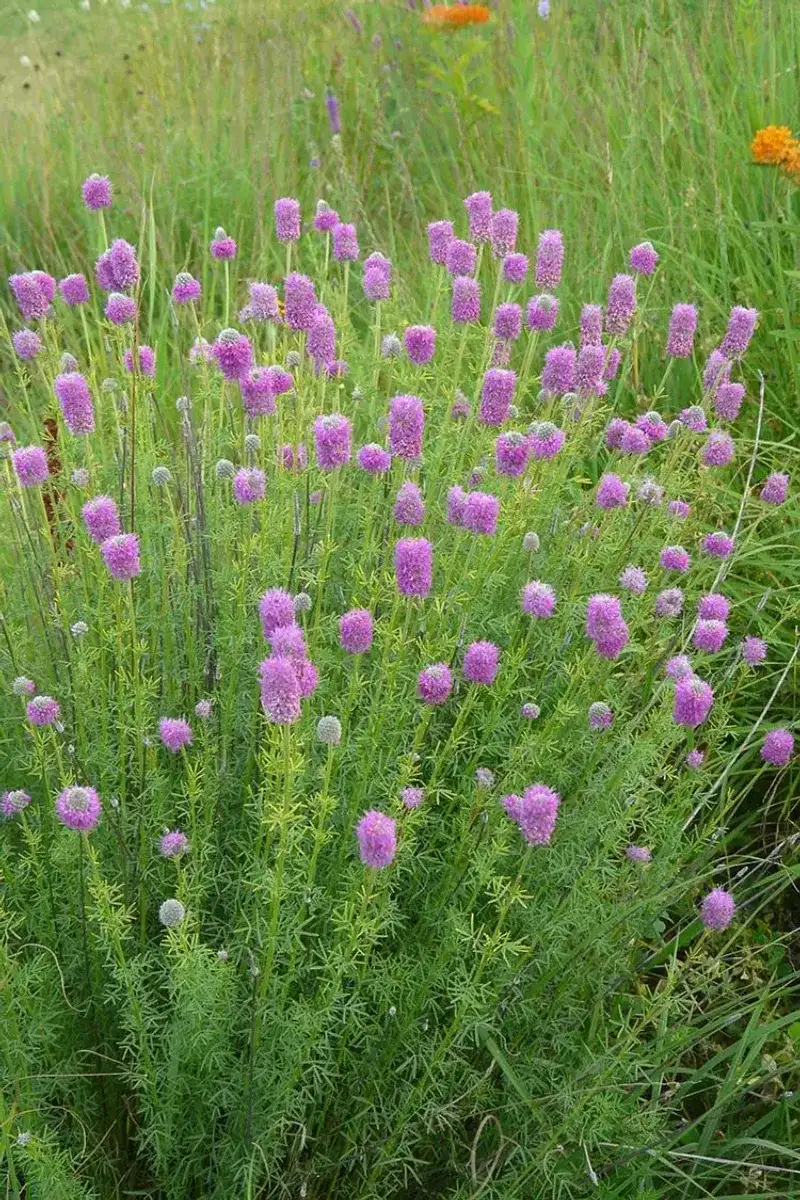 Prairie Clover, with its delicate purple blooms, is a subtle yet impactful addition to meadows. This native plant supports pollinators and enriches the soil with nitrogen, promoting a healthy ecosystem.
