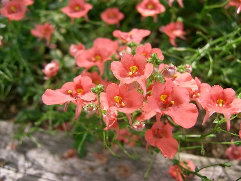 Diascia integerrima, known as Twinspur, offers soft apricot blooms in tidy mounds that thrive in heat. These flowers add a gentle splash of color to garden borders, creating a warm and inviting atmosphere.