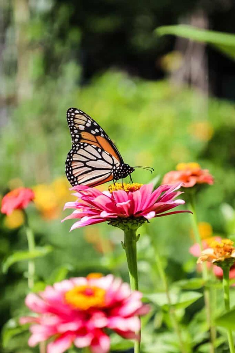 Zinnias are a butterfly magnet with their bold, daisy-like heads available in single or double forms. These bright blooms bring a sense of joy and color to any garden, creating a lively atmosphere.