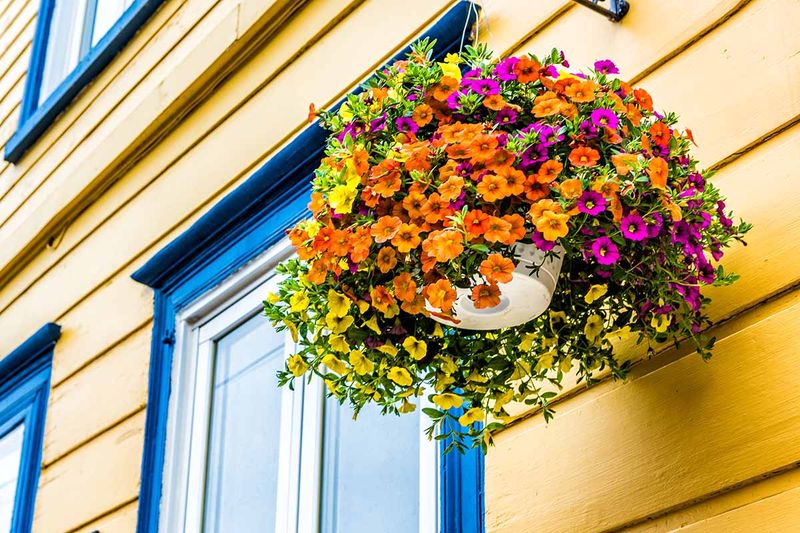 Petunias enchant with their endless color varieties, including ruffled and fringed forms. These flowers thrive in hanging pots, offering a cascade of vibrant color that captures the eye.