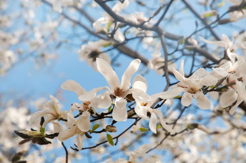 Magnolias captivate with their grand blossoms, yet they often suffer from frost damage and require ample space. For a more compact option, try star magnolias, which offer similar beauty in a smaller form. Star magnolias bloom early in the spring, gracing gardens with fragrant, star-shaped flowers. Their compact size makes them suitable for smaller gardens, and they are hardy in a variety of climates. With less susceptibility to late frosts, star magnolias provide reliable charm without overwhelming their surroundings. They bring elegance and fragrance to any outdoor space.