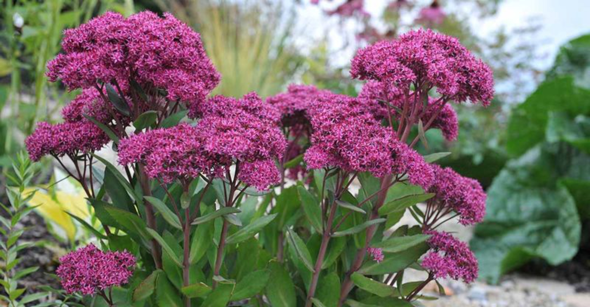 Sedum, commonly known as Stonecrop, is renowned for its succulent leaves that store water, making it perfect for dry areas. This perennial adds late-season interest with its varied foliage colors and star-shaped blooms. Sedum is adaptable, thriving in rock gardens and xeriscapes alike. Historically, its name ‘Stonecrop’ reflects its ability to grow on stony surfaces. This plant is not just a pretty face; its resilience and ease of growth make it a practical addition to any garden seeking water conservation.