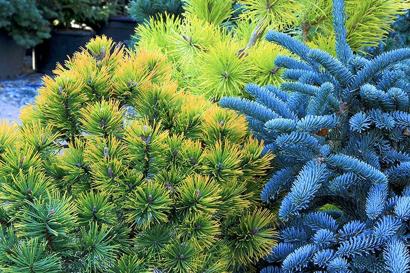 Dwarf varieties of spruce, pine, and juniper thrive in containers and require almost no pruning. They’re particularly striking when frost or snow highlights their unique textures during winter months.