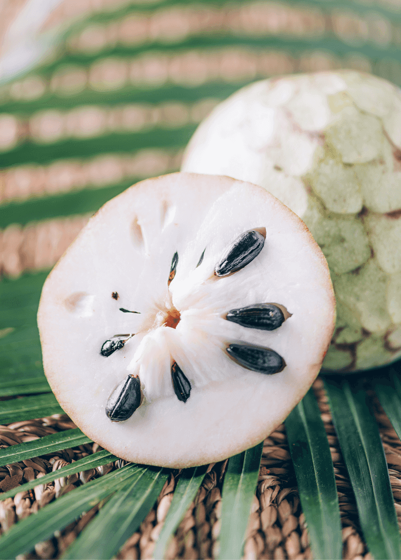 Cherimoya, celebrated by Mark Twain as the ‘most delicious fruit known to men,’ boasts a creamy white flesh with a sweet, custard-like flavor. Its green, scaly exterior may seem daunting, but the fruit is easy to cut open and scoop out.