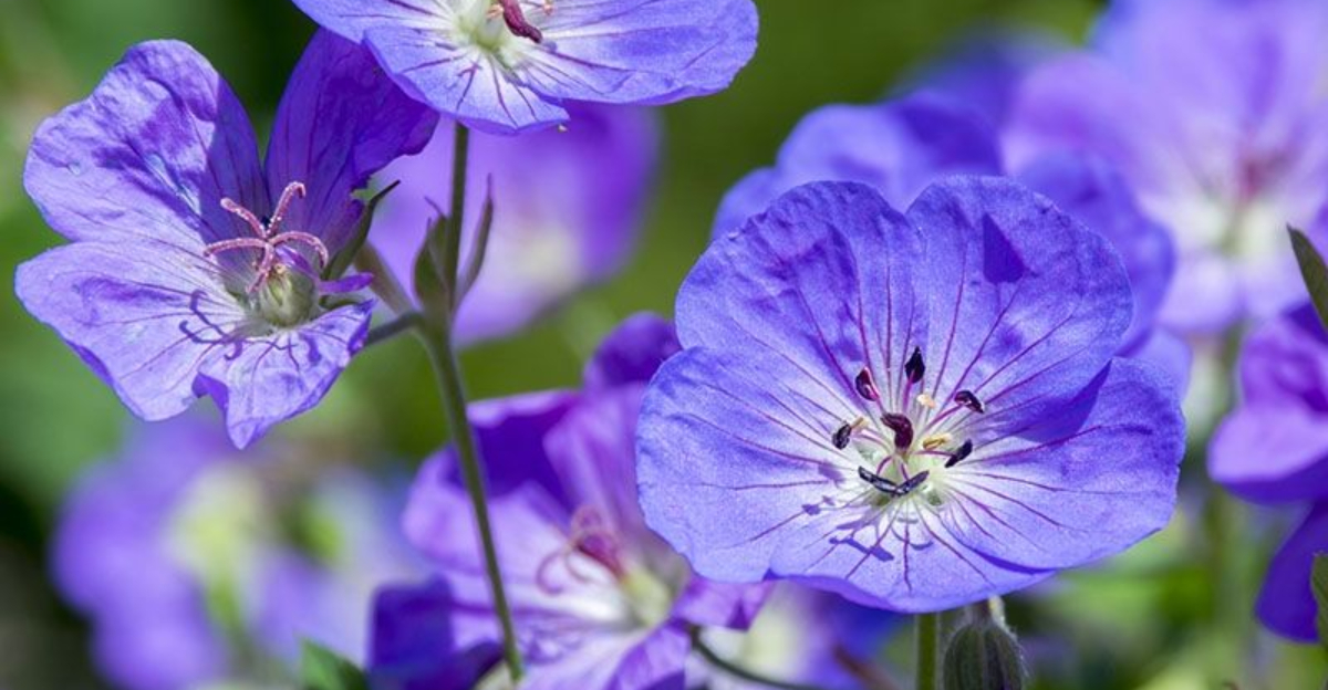 Geranium Rozanne is a superstar in the world of container perennials, known for its long blooming season and vivid blue flowers. Its sprawling habit fills containers with lush greenery and color.