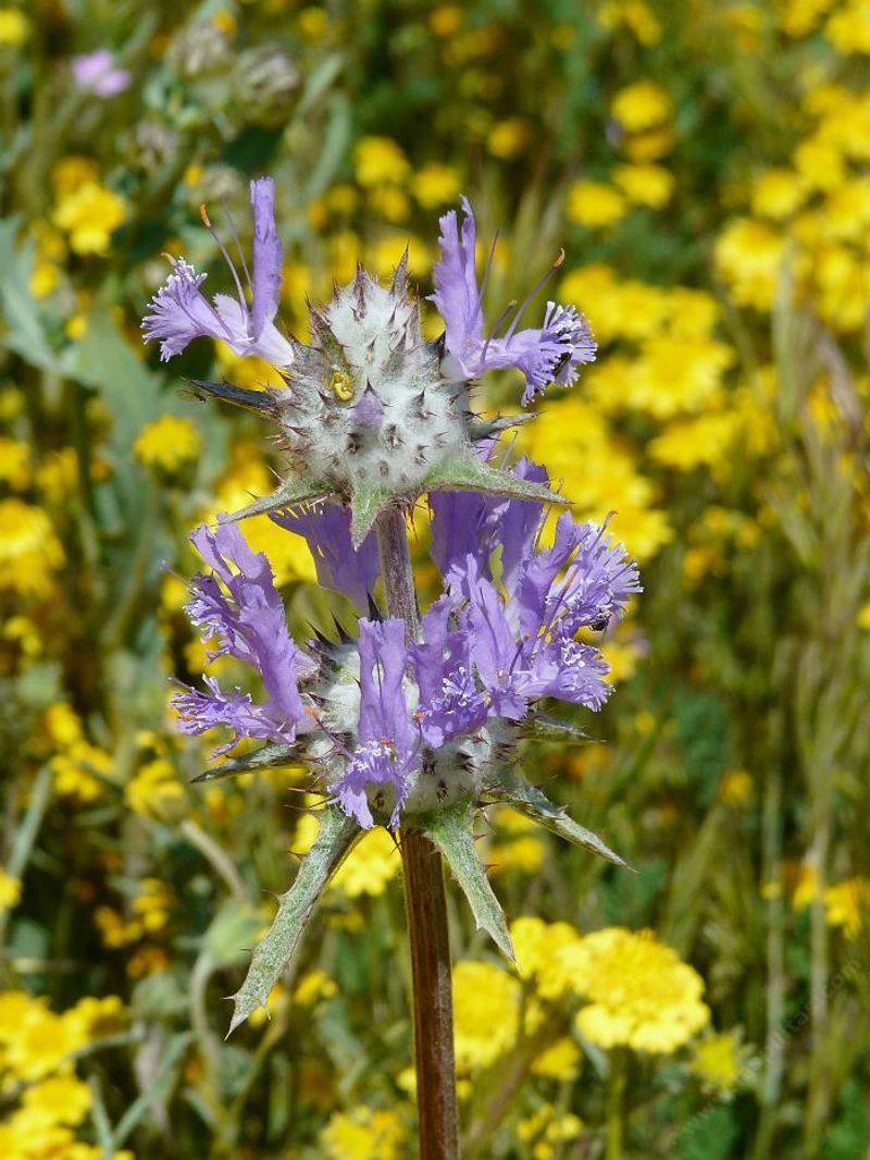 Thistle sage, or Salvia carduacea, is noted for its sharp foliage and vibrant purple flowers. Its seeds are edible, albeit not commonly harvested.
