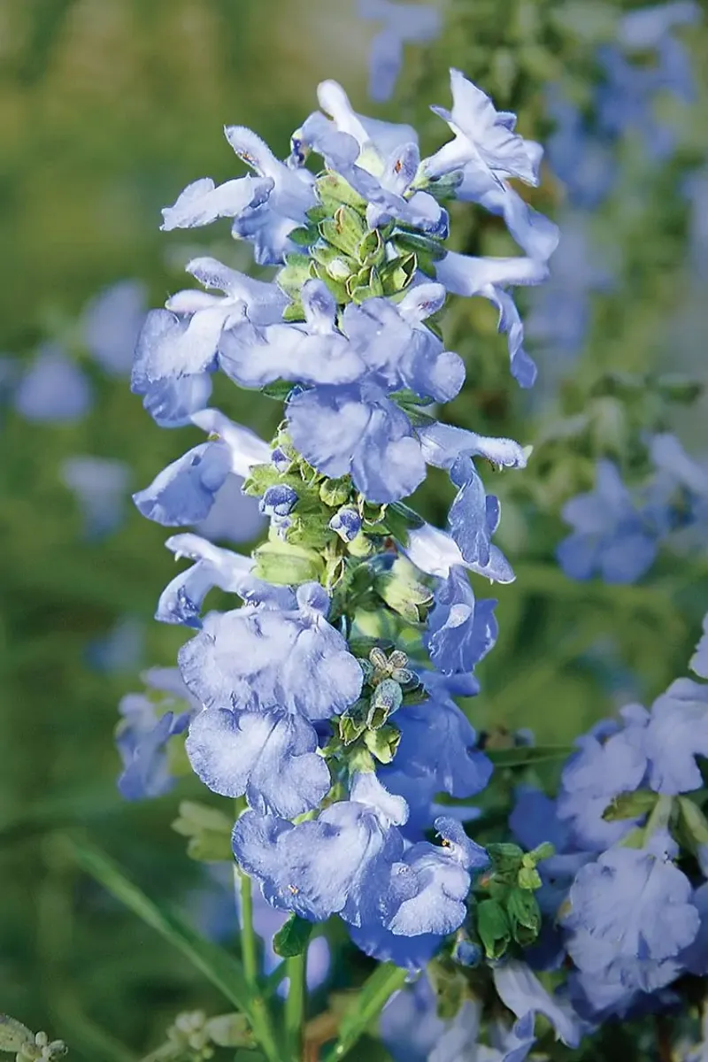 Blue chia, or Salvia polystachya, stands out with its tall stature and vibrant blue-purple flowers. This tropical species thrives in humid environments, adding height to any landscape.