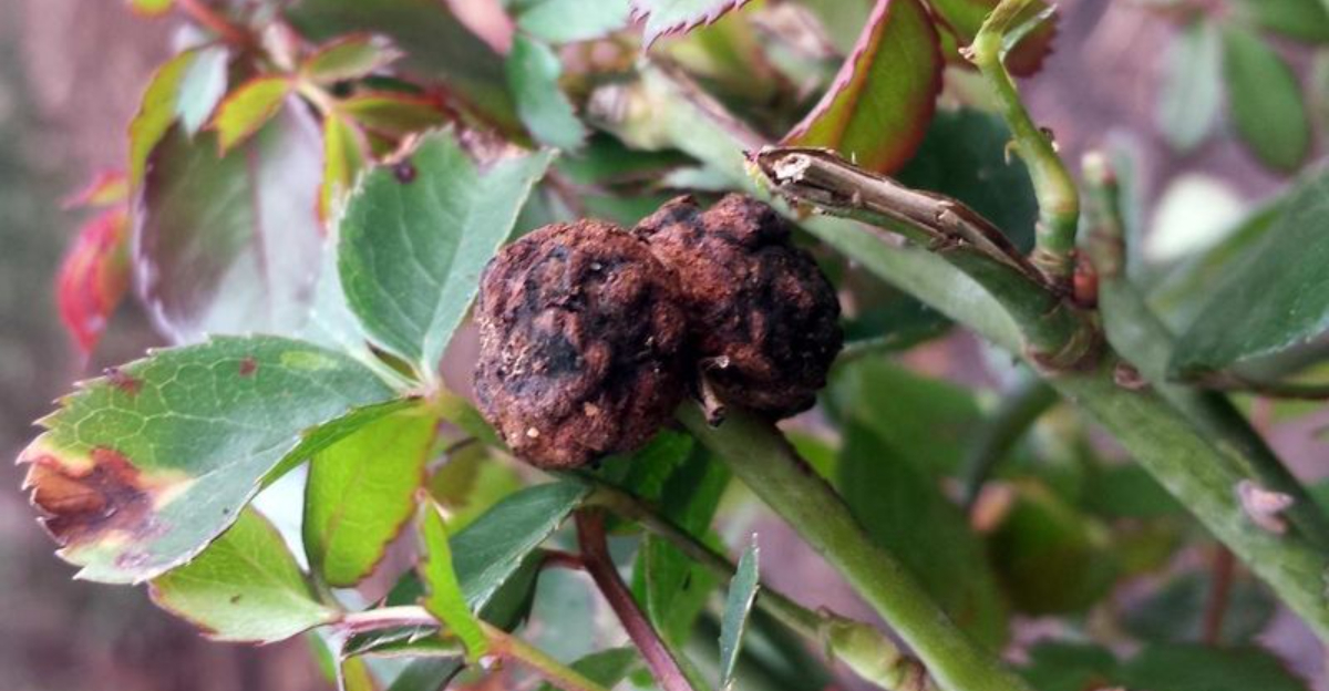 Crown gall forms tumor-like growths on plant stems, impacting roses and fruit trees. Caused by Agrobacterium, it alters plant DNA.