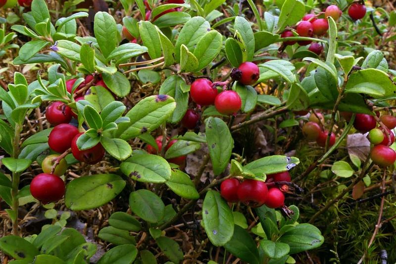 Lingonberries paint a picturesque landscape with their vibrant red fruit and evergreen leaves. Known for their resilience, these berries thrive in cooler climates and require minimal upkeep.