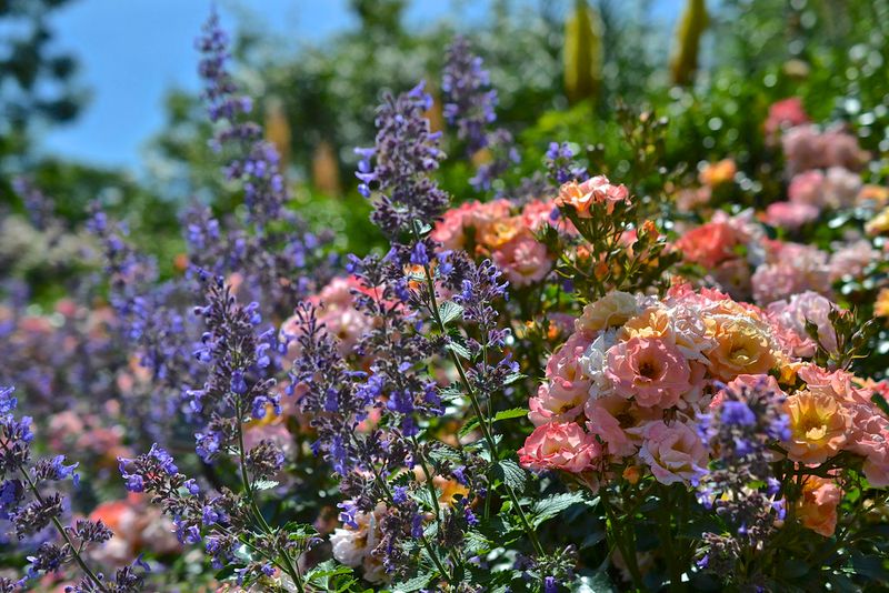 Catmint is adored by pollinators and adds a whimsical touch to rose gardens. Its soft blue flowers and aromatic leaves attract bees, butterflies, and hummingbirds, ensuring a lively and dynamic environment. The cascading nature of catmint provides a lovely contrast to the upright stature of roses.