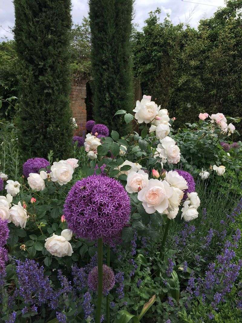 Alliums, with their tall, striking purple globes, add architectural elegance to rose gardens. These unique blooms not only captivate the eye but also serve a functional purpose. Alliums deter aphids and other pests that may harm roses, acting as a natural protector.