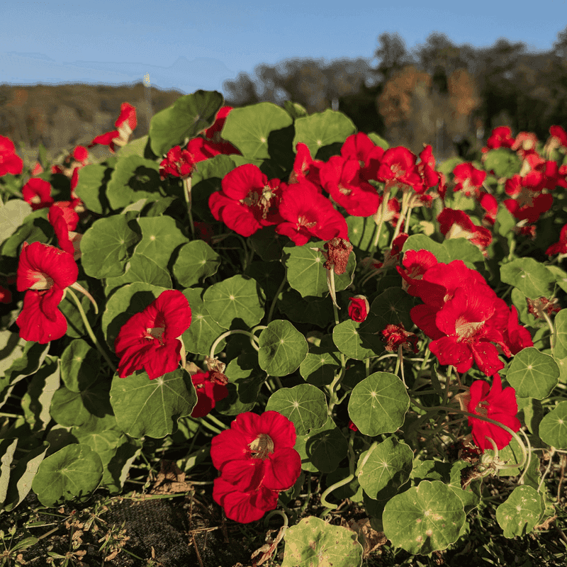 Nasturtiums thrive in poor soil and require little care, making them ideal companions for roses. Their trailing nature creates a lush ground cover, adding depth and visual interest. With their bright hues and practical benefits, nasturtiums are a lively addition to any rose garden, ensuring both beauty and balance.