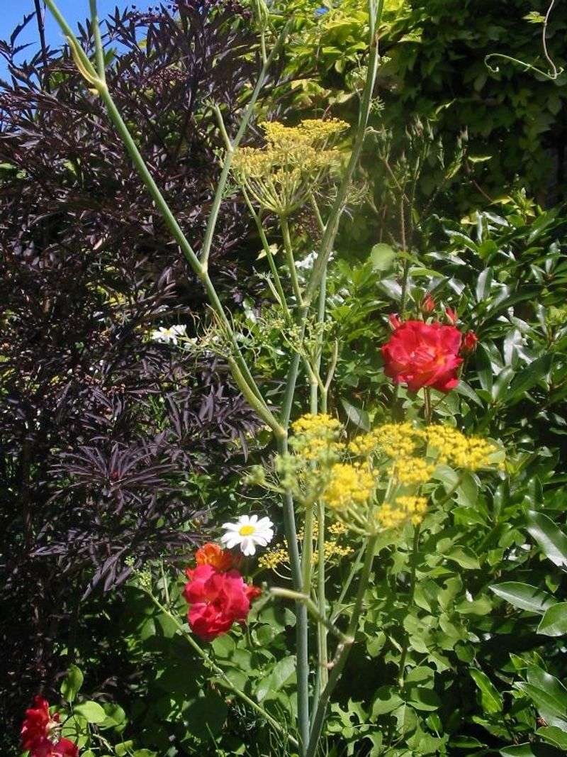 Though fennel’s presence can inhibit the growth of some plants, it coexists well with roses, providing both beauty and practicality. The tall, airy structure of fennel complements the robust nature of roses, adding visual interest without overpowering. A unique and valuable addition, fennel supports the health and aesthetic appeal of rose gardens.