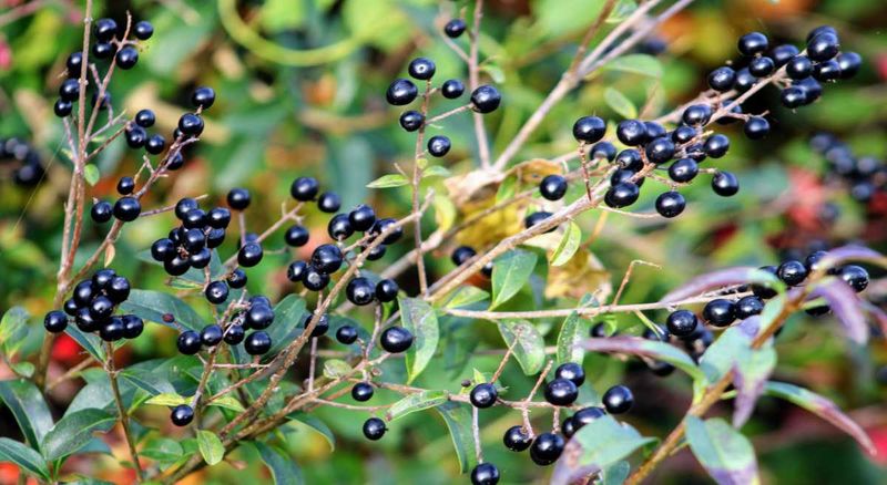 Privets provide dense foliage and dark berries, creating a haven for birds. Their glossy leaves and abundance of berries offer both food and shelter.