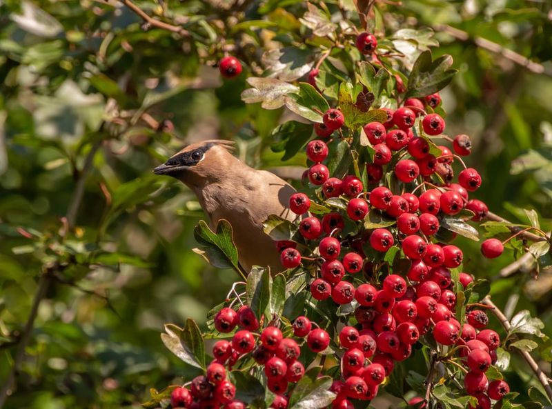 With its fiery berries, the Firethorn (Pyracantha) becomes a feast for the eyes and a haven for birds. Its vibrant clusters of orange-red berries are not only attractive but also irresistible to many bird species. Even in winter, this shrub offers food and shelter, making it a year-round favorite.
