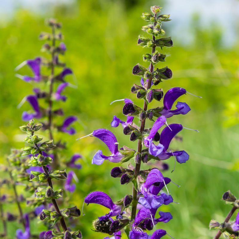 Meadow Clary stands tall and proud, its spikes of violet-blue flowers capturing the attention of bumblebees and honeybees alike. This perennial’s silvery foliage adds an ethereal quality to garden borders. As the bees buzz from bloom to bloom, they inadvertently perform essential pollination tasks. Meadow Clary thrives in dry soils, requiring minimal maintenance once established. Its striking appearance and ecological benefits make it a captivating and functional choice for gardeners dedicated to supporting local wildlife.