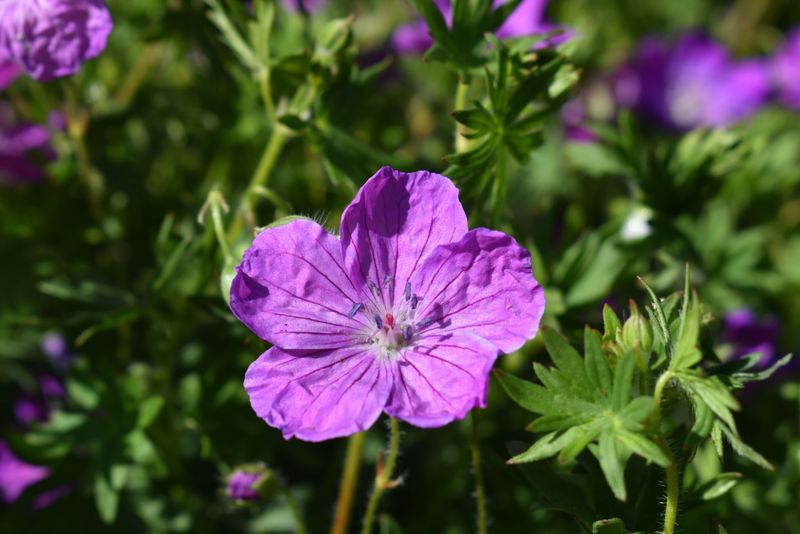 Bloody Cranesbill offers a burst of rose-pink flowers atop neat mounds of ferny leaves, creating a serene garden retreat. Its long blooming season provides a consistent source of nectar and pollen for solitary bees and hoverflies. This hardy perennial thrives in well-drained soil, requiring little attention once established. Its vibrant color and delicate foliage make it a visually appealing and functional addition to any garden. By enhancing biodiversity, Bloody Cranesbill plays a pivotal role in supporting local ecosystems and promoting sustainable gardening practices.