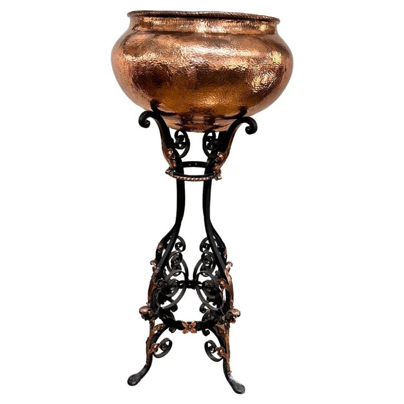 Echoing the charm of bygone days, this copper bowl stand exudes vintage allure. With its verdigris patina, it embodies timeless elegance.