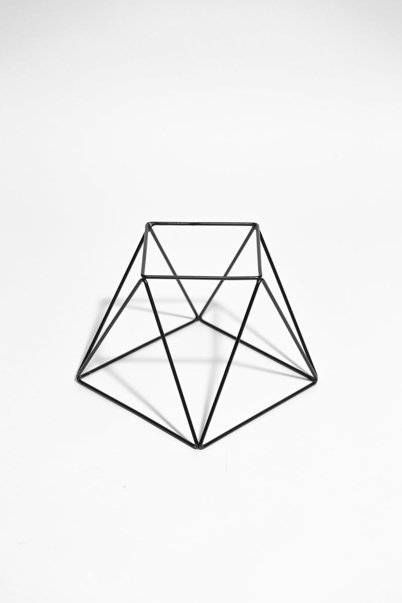 Modernity meets artistry with the geometric wireframe stand. Its matte black finish and angular design create a captivating silhouette.