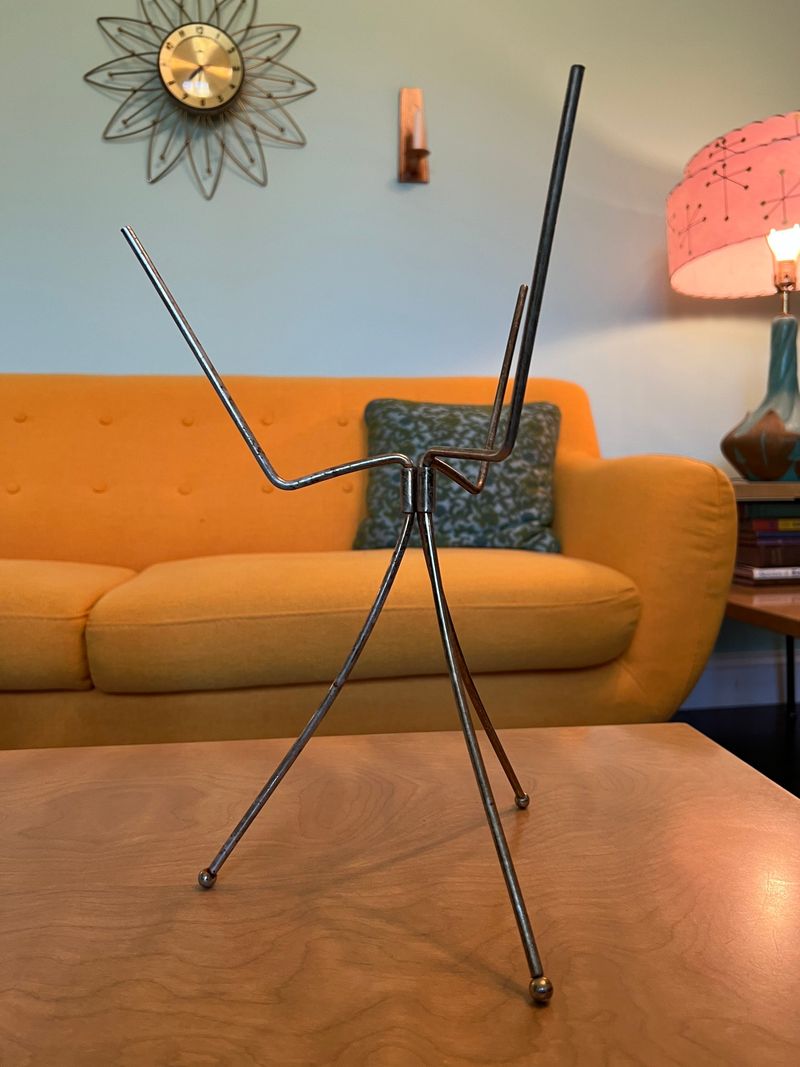 Step back into the stylish 60s with this mid-century modern tripod stand. With its dark walnut wood and retro flair, it brings bold character to any room.