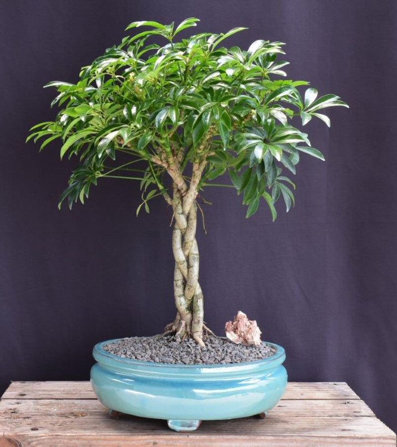Nicknamed the Umbrella Plant for its radiating leaf pattern, Schefflera transforms into a tropical-looking bonsai with minimal fuss. The naturally woody stems respond beautifully to wiring and shaping techniques.
