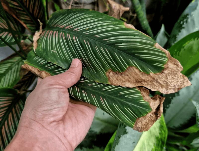 Imagine a parched desert cactus—your plant might feel the same if underwatered. Brown, crispy leaf edges and drooping signal dehydration. The soil may have pulled away from the pot, desperately needing a thorough soak. Water until it drains from the bottom and consider self-watering spikes for thirsty plants. Mist the leaves of humidity-loving plants like ferns. Did you know a dehydrated peace lily can spring back to life in just four hours after watering? Such resilience shows the power of hydration, a simple yet effective remedy.